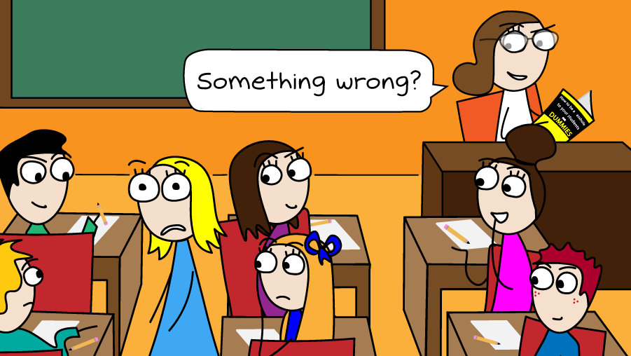 My classmates looked up from their math tests.