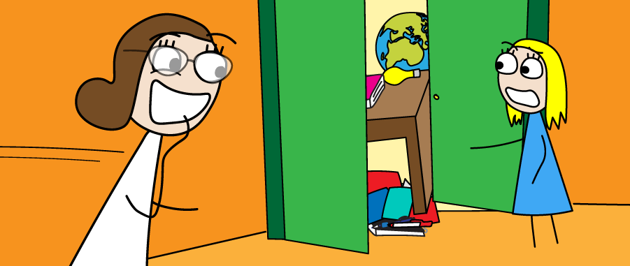 While I was in the bathroom, she instructed the kids to hide my desk and rearrange the furniture.